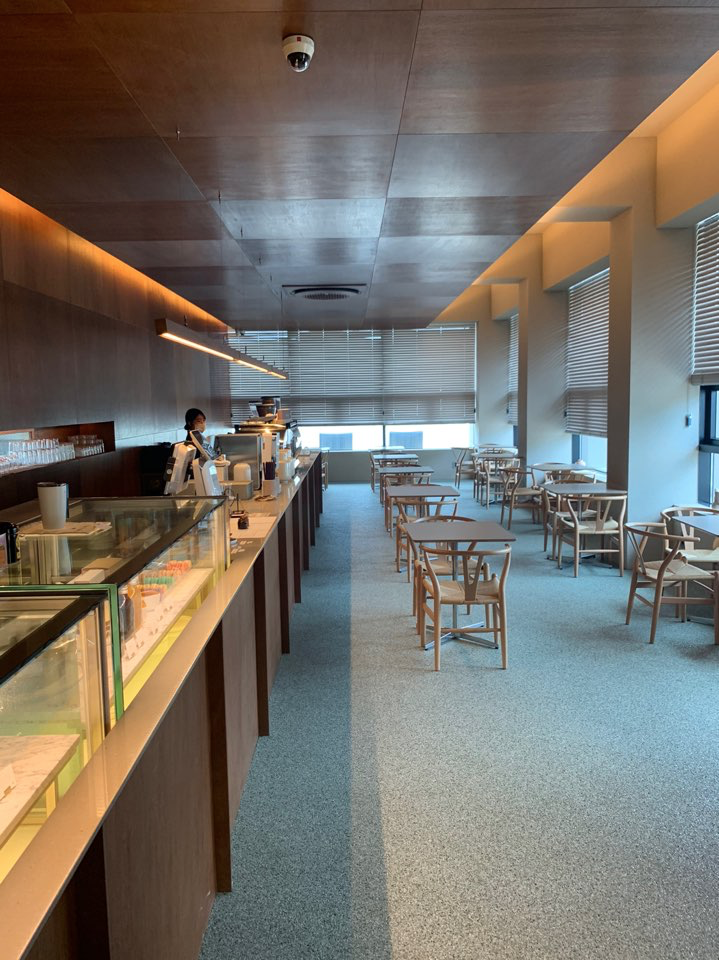 2층이 이렇게 생겼기 때문입니다. 저도 들어가자마자 테이블이 따로 없어서 당황했습니다. 테이블은 따로 없고 이렇게 앉아서 먹는 큰 공간이 전부입니다. 테이블과 와이파이가 필요하신 분들은 1층에서만 이용 가능하니 참고해주세요.