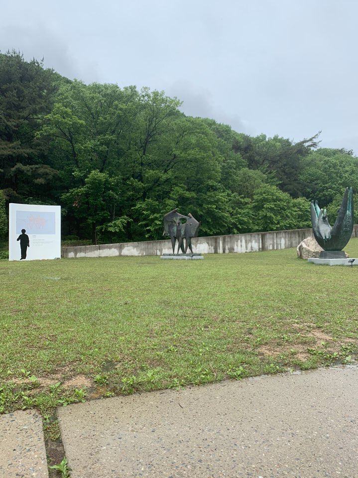 겉보기와는 다르게 매표소를 통과하시면 넓고 탁트인 공간이 나오는데요, 바로 양주장욱진미술관 조각 공원입니다. 매표소를 통과해서 바로 미술관 전시장이 나오는 것이 아니고 조각 공원을 지나야지만 미술관 본관으로 입장할 수 있습니다. 걷는 거리가 조금 있는 편이니 비 오는 날이면 입장하시기 전에 반드시 우산을 챙기셔야 할 것 같네요.